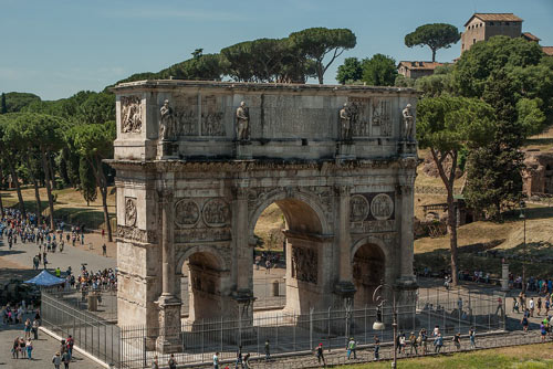 Levantado en el siglo IV de nuestra era, este imponente arco de 21 metros de alto se levanta entre el Coliseo y la colina del Palatino siendo el más moderno de todos los arcos triunfales que se construyeron en Roma y un gran ejemplo del esplendor tardío del imperio. Para echarse un buena foto con el arco de fondo, hay que subir a una planta del Coliseo e irse hasta la esquina que da al arco, la altura es perfecta para la instantánea…