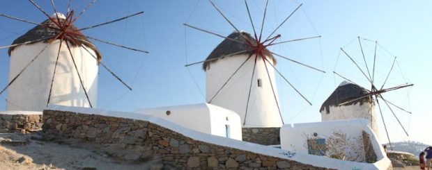 Chora con sus hermosas casas encaladas con sus puertas y balcones de colores, las laberínticas calles, el seductor barrio de la Pequeña Venecia, el barrio de Kastro con los restos de un castillo y los famosos molinos, símbolo de la isla, que ornan las suaves colinas de Míkonos y que le dan ese aspecto tan romántico.