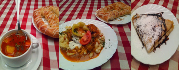 El Gullash soup, la más famosa sopa húngara, hecha de carne de vaca, patatas, vegetales, pimentón y otras especias, es la entrada ideal a la comida húngara. Queda bien para acompañar el paprika chicken, que es pollo con sus tradicionales pimientos y generalmente es acompañado con “ñoquis”. La comida tiene una variedad para diferentes gustos como el Rakott Krumpli, una opción de patatas horneadas, huevo, queso y salsa para quienes prefieren no comer carne.