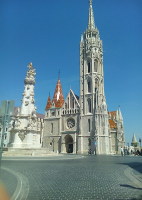 Junto a la iglesia está la estatua de la santísima trinidad la cual conmemora a las víctimas de las epidemias de las pestes que azotaron a buda.