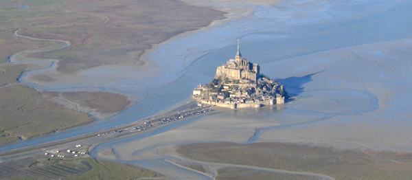 En cuestión de horas, determinados días al año (en la página web de la oficina de turismo del Mont Saint- Michel se puede consultar la tabla de mareas), toda esa extensión es anegada por el agua, cubriendo incluso la pasarela y el Mont Saint Michel queda convertido en una isla inexpugnable. Estas son las mareas más grandes de Europa.